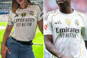 弗吉尼亚上周做客伯纳乌球场,秀出自己身穿皇马球衣的图片,以及维尼修斯的7号和球衣上的亲笔签名。