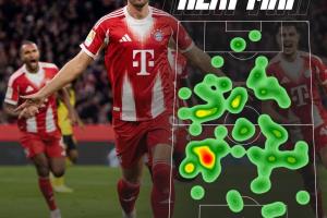 德甲国家德比,凯恩的进球帮助拜仁2-1击败多特蒙德。本场凯恩不仅打入了首开记录的头球,在串联策动、对抗、防守方面也燃尽所能。