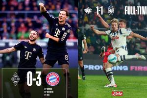 体育资讯10月26日讯 周末比赛日,德甲的拜仁3-0门兴,意甲的亚特兰大1-1克雷莫内塞,两队继续保持不败,仍是五大联赛唯2不败的球队。