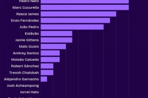 切尔西本赛季英超创造机会榜: