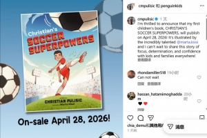 体育资讯11月15日讯 普利西奇通过社交媒体宣布,将出版儿童读物在美国的孩童群体中宣传足球。